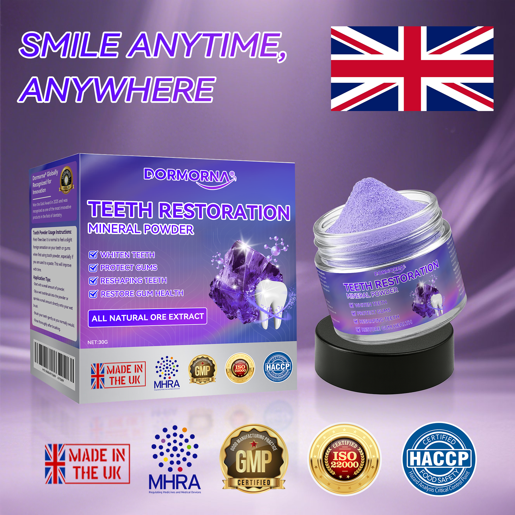 ๐๐จ๐ซ๐ฆ๐จ๐ซ๐ง๐ยฎ ๐๐๐๐ญ๐ก ๐๐๐ฌ๐ญ๐จ๐ซ๐๐ญ๐ข๐จ๐ง ๐๐ข๐ง๐๐ซ๐๐ฅ ๐๐จ๐ฐ๐๐๐ซ eliminates 99.99% of bacteria, resolves bad breath, removes plaque and tartar, treats gingivitis and periodontitis, relieves toothache, prevents and treats cavities, restores tooth enamel, stimulates reparative dentin formation, and supports the regeneration of lost teeth.