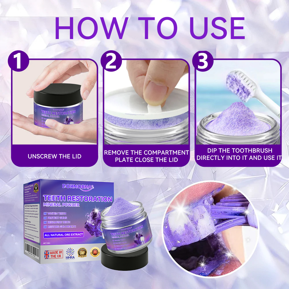 Mineral elements help kill bacteria and eliminate harmful bacteria within the gums, helping to repair cavities and promote long-term oral health. ๐๐จ๐ซ๐ฆ๐จ๐ซ๐ง๐ยฎ ๐๐๐๐ญ๐ก ๐๐๐ฌ๐ญ๐จ๐ซ๐๐ญ๐ข๐จ๐ง ๐๐ข๐ง๐๐ซ๐๐ฅ ๐๐จ๐ฐ๐๐๐ซย delivers essential nutrients directly to the teeth and gums for rapid absorption, promoting fast cavity recovery, cavity repair and improved overall gum health.